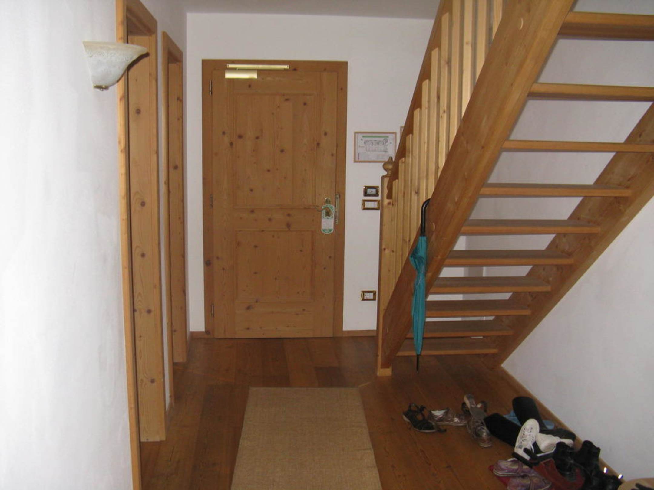 Der Aufgang in die obere Etage mit viel Stauraum!
