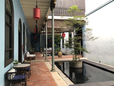 Im Innenhof, vor den Zimmern