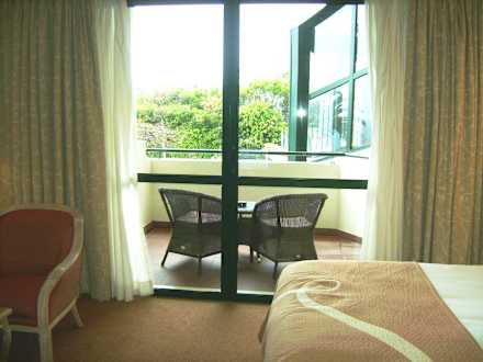 Blick aus Zimmer auf Balkon