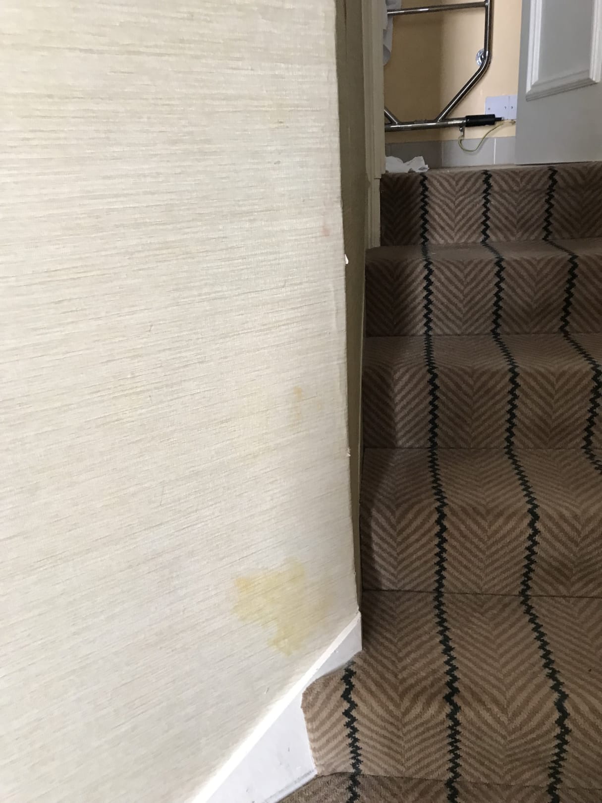 Flecken an der Wand und der Aufgang ins kleine Bad