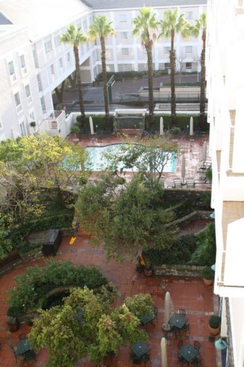 Blick vom Zimmer in den Innenhof m. Pool