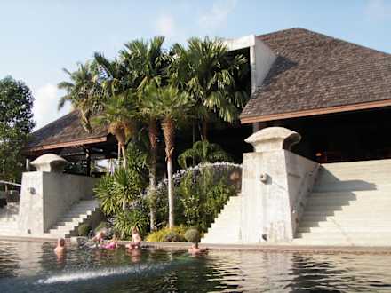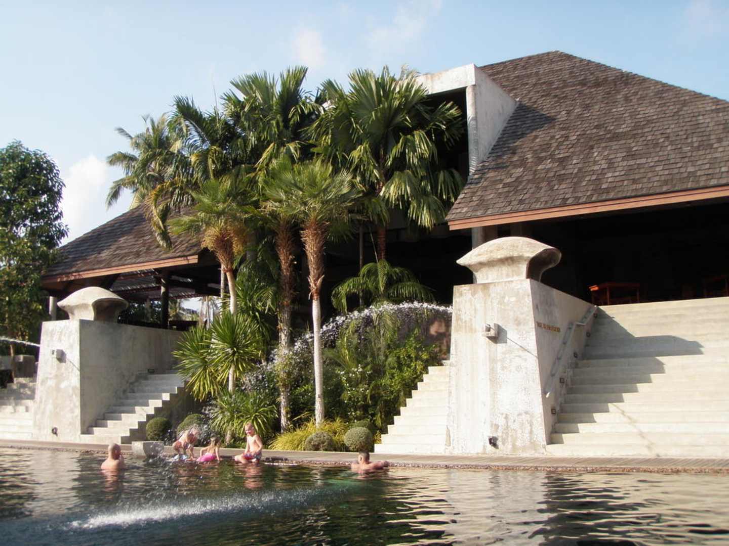Blick vom Pool zum Restaurant