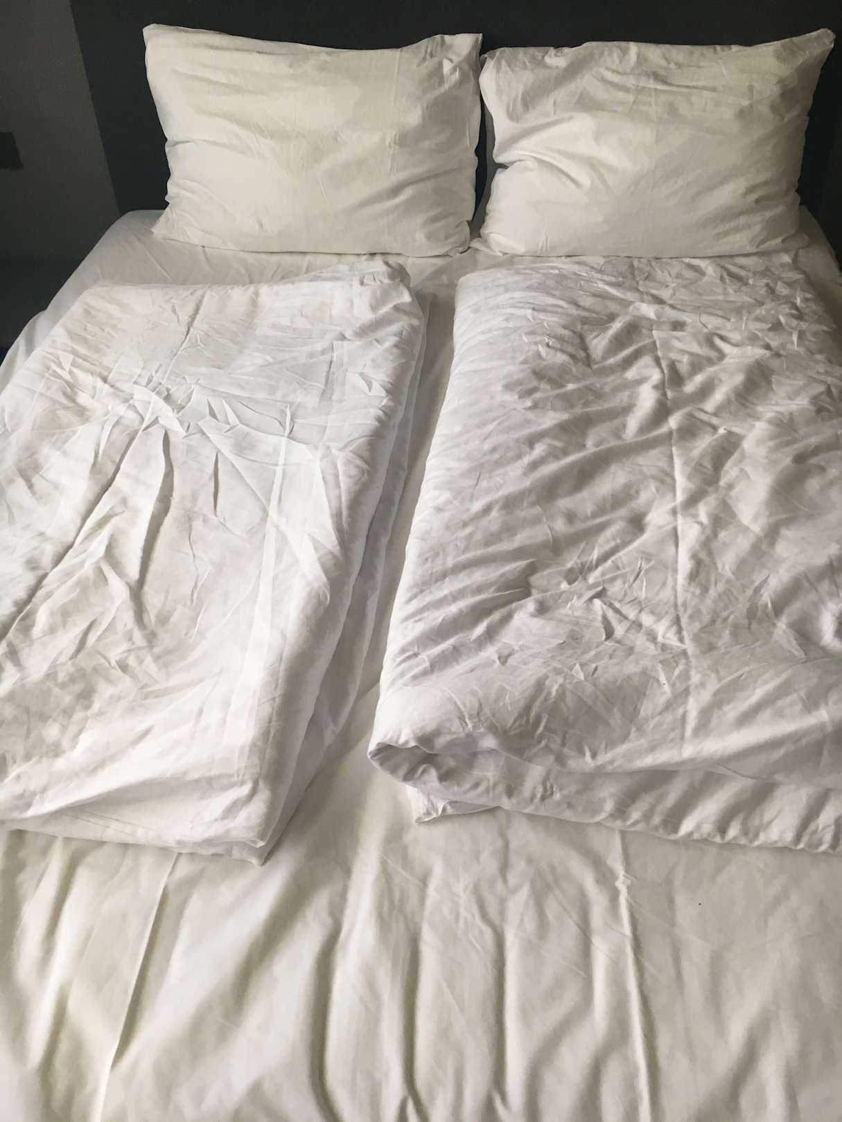 So sah das Bett aus, nachdem der Zimmerservice drin war.