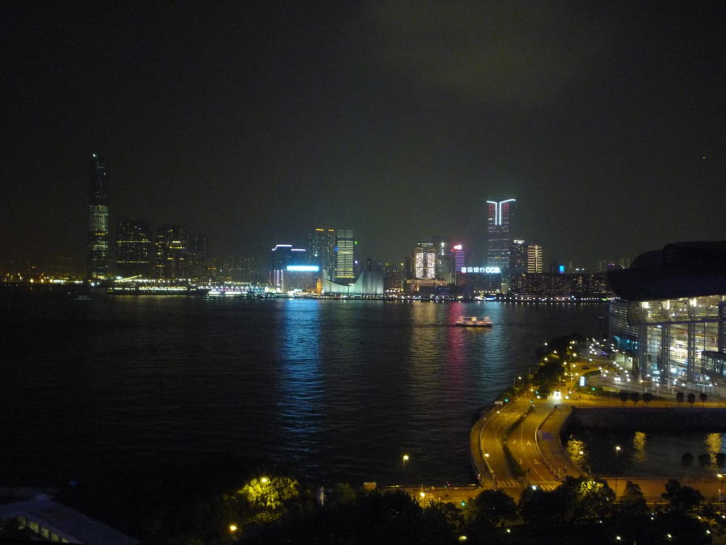 Rechts sieht man das Messezentrum. Drüben ist Kowloon.