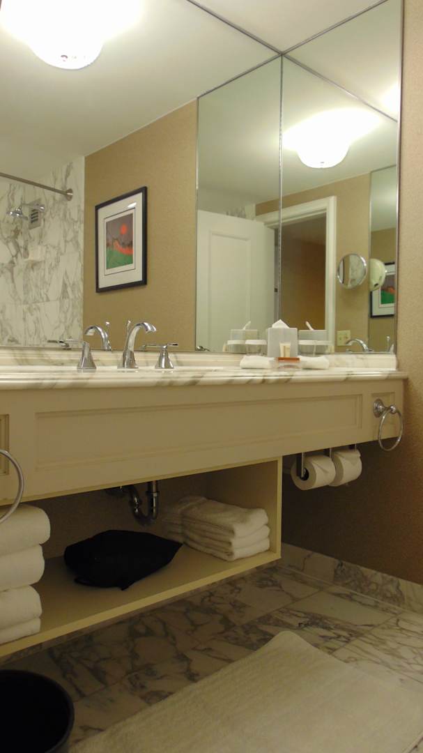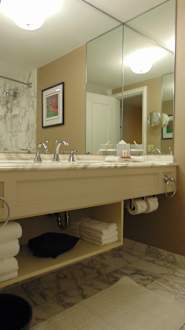Bad mit üppiger Vetspiegelung und weiß-grauen Marmorfliesen - sehr edel!
