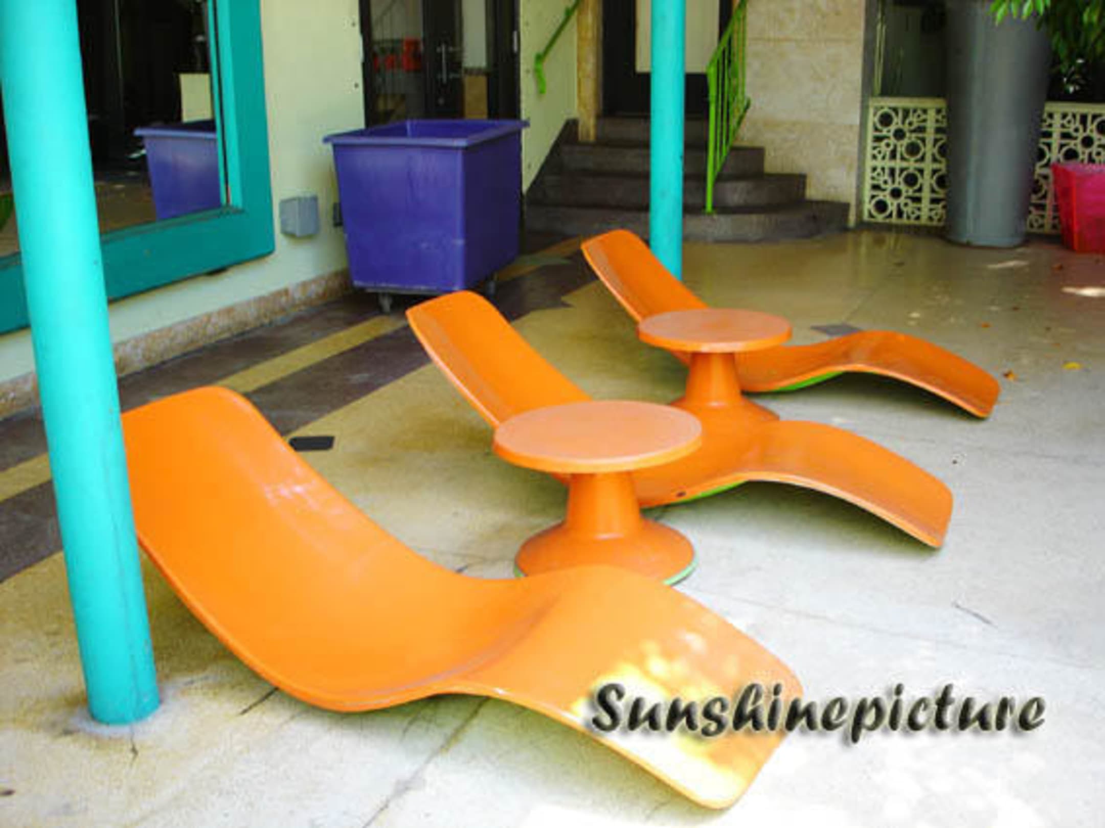 Die Liegen im Garten. Sind immer im Schatten und nicht besonders bequem.