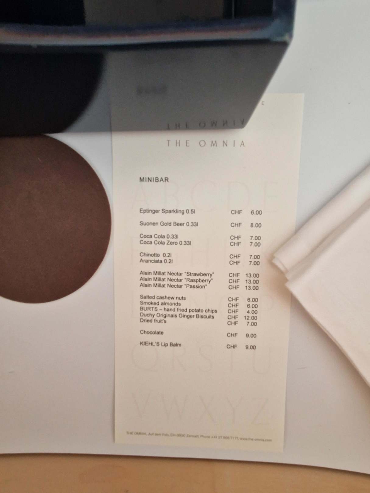 Preisliste Minibar