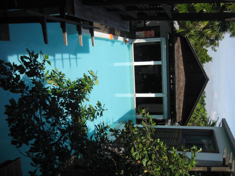 Blick auf Pool, das Restaurant und die Lobby