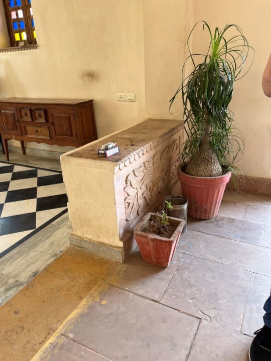Die Mauer ist der Aschenbecher der Rezeption.