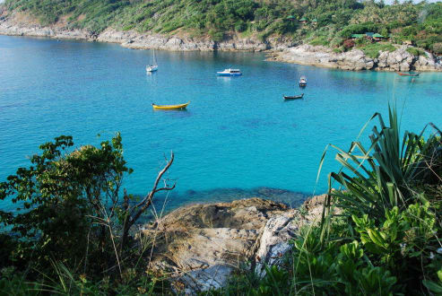 Blick vom nahegelegenen Hügel auf die Bucht