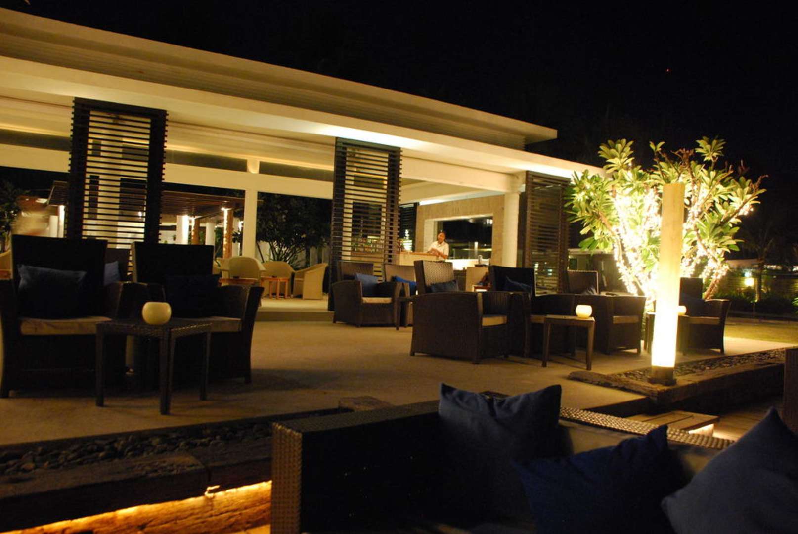 Strandbar abends vom Wasser