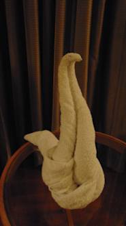 Kunstvoll gefaltene Kobra aus einem Gästehandtuch!!! :-) Zur Begrüßung im Zimmer bei der Ankunft nachts!