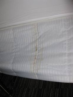 Flecken an unserem Bett. Nach Beschwerde wurde alles ausgetauscht und sich entschuldigt.