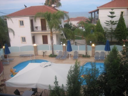 von unserem Balkon auf Pool und Meer
