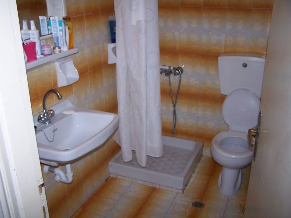 die "riesengroße Dusche" mit zu kurzem Duschvorhang