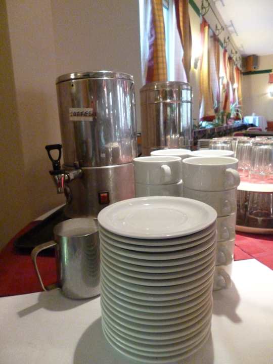 Kaffee und heißes Teewasser in Behältern