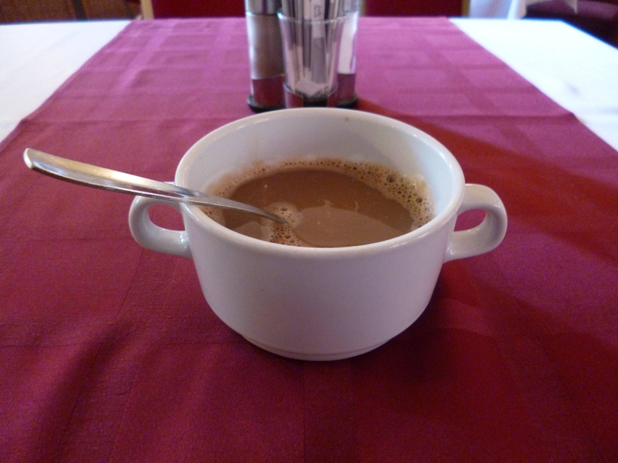 Ich habe mir sagen lassen, dass diese "Tassen" durchaus normal sind in Ungarn für Kaffee und auch dass er extrem stark ist, sei Normalität. Für mich war der Kaffee selbst mit viel Milch zu stark!