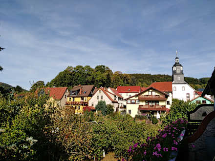 Blick vom Balkon in Richtung Kirche