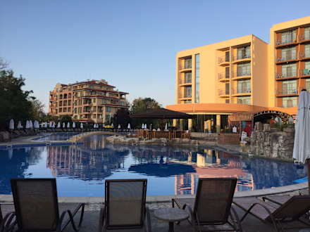 Ziemlich alle Hotels haben die Pool zum Meer gerichtet (Oststeite)