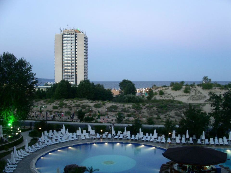 Unser tägliches Bild aus dem dritten Stock auf das Bourgas Beach Hotel mit Meer