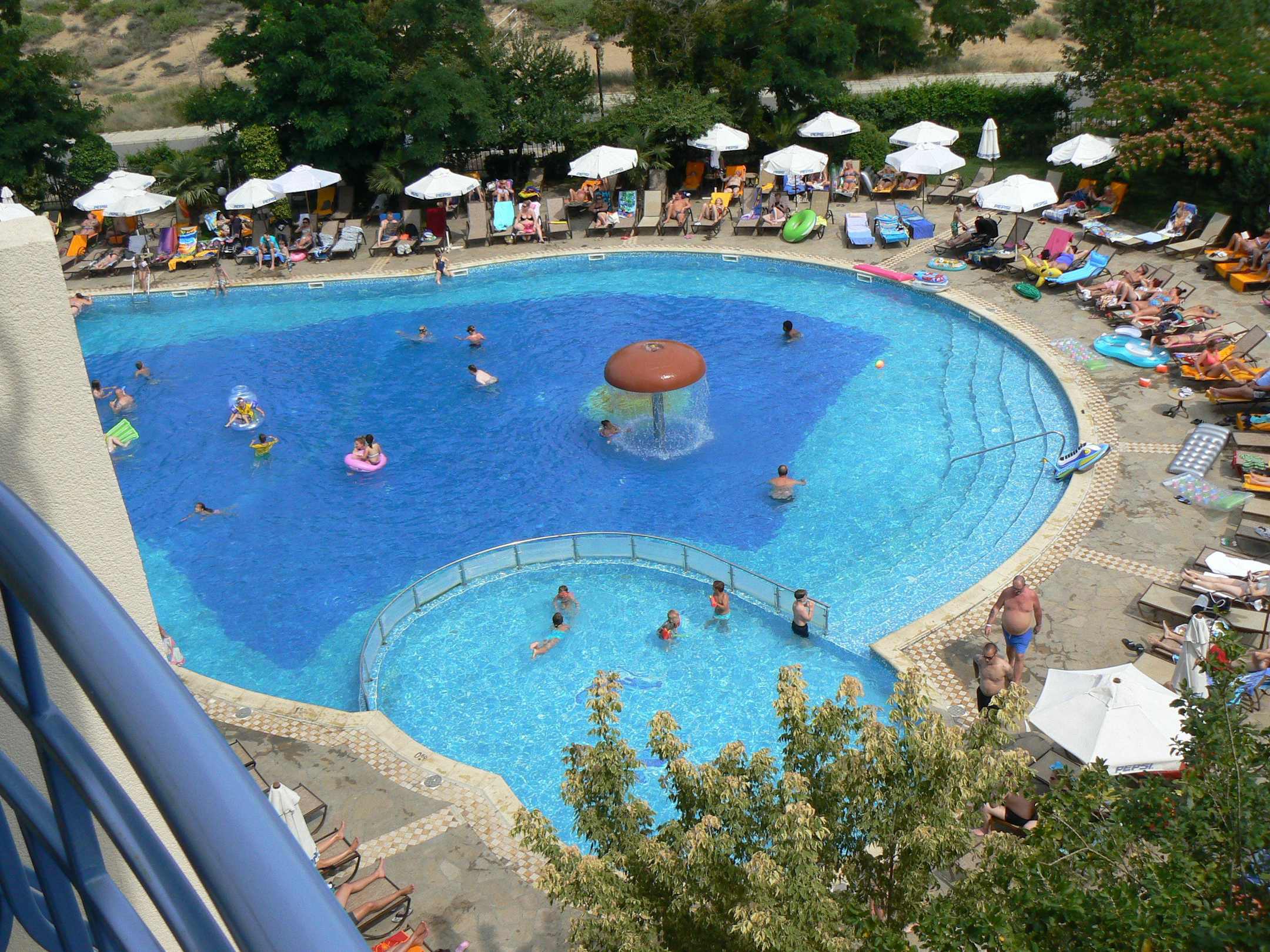 Ca. 1/3 der Poolanlage aus Zimmer 355 Junior Suite