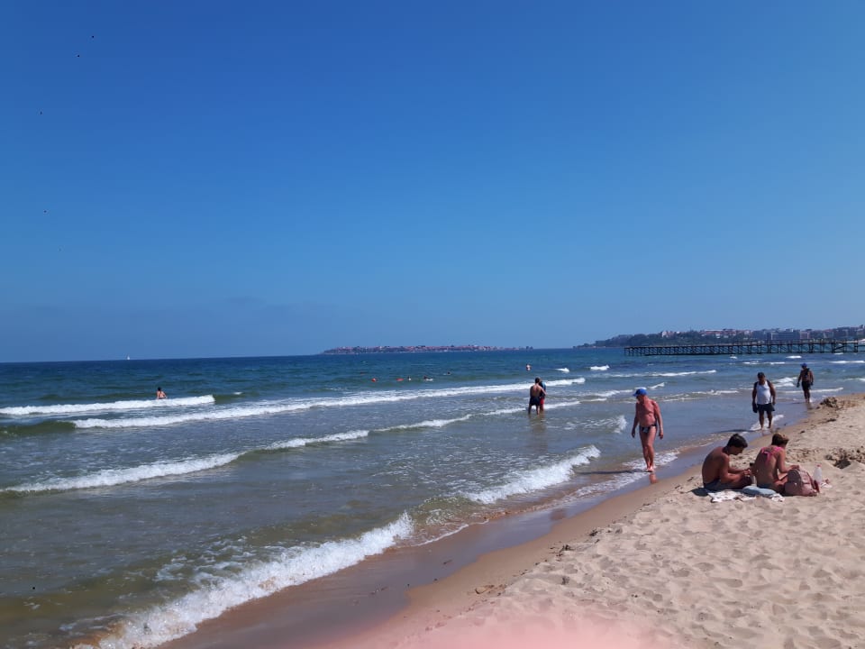 Strand mit Blick auf Nessebar im Hintergrund