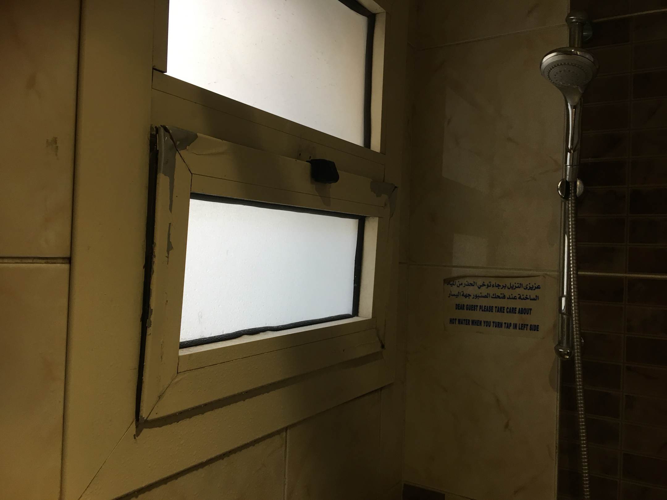 kaputtes Badezimmerfenster, das nicht richtig schliesst (Lärmquelle)