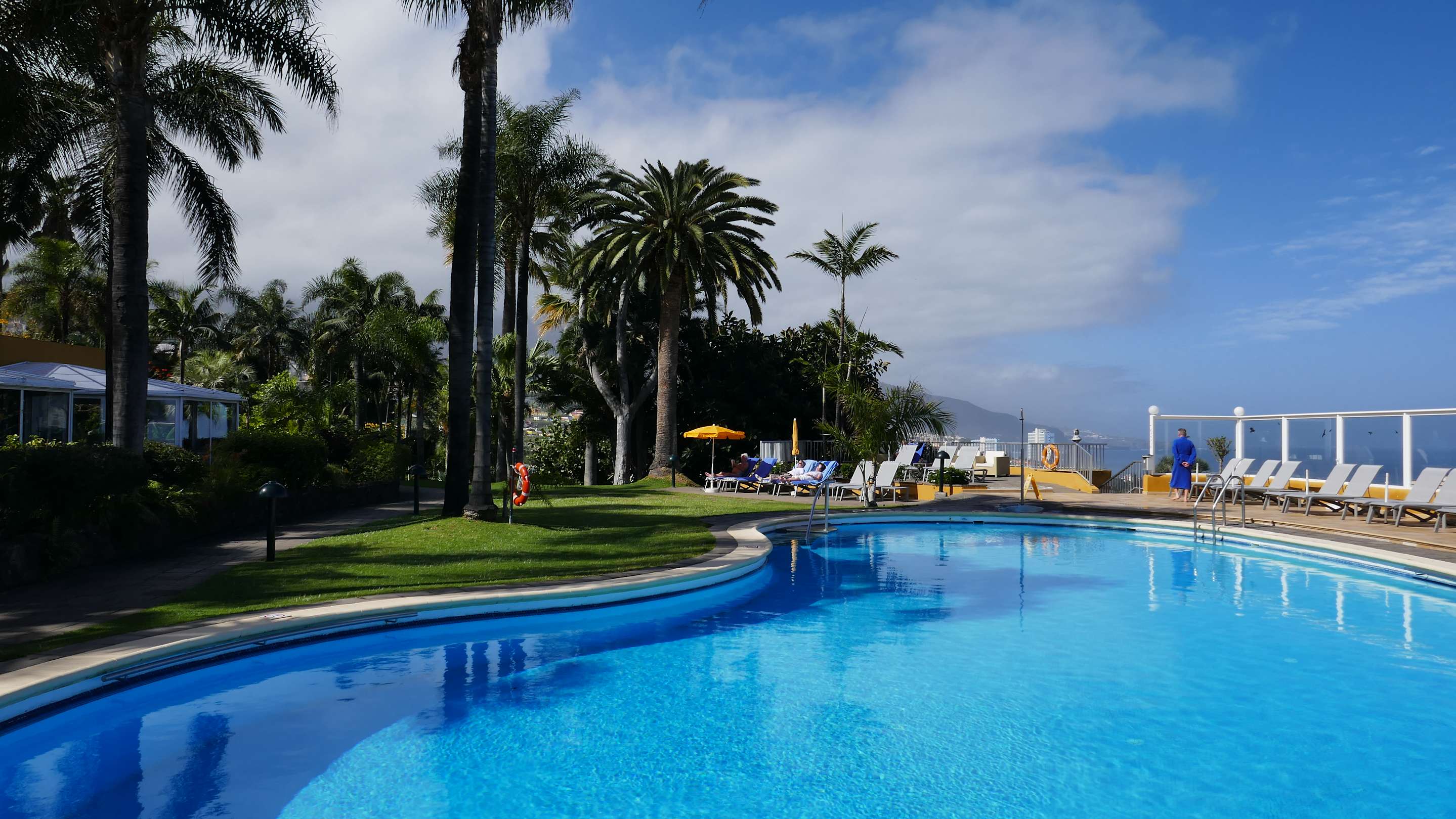 Pool mit Wassertemperatur von 26 °C, eingebettet in der subtropischen Gartenlandschaft des Hotels; ausreichend vorhandene Liegen, die niemals mit Badetüchern "reserviert" waren.