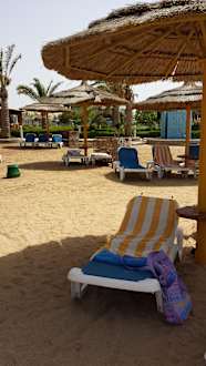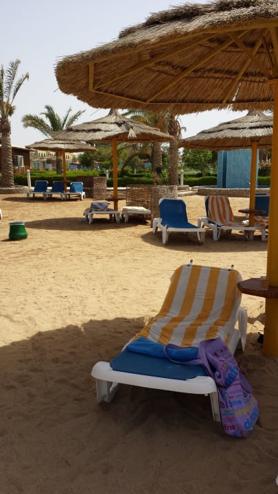 ausreichend Liegen und Schirme. Strandhandtücher vorhanden