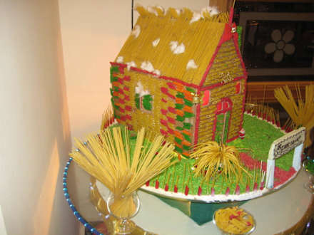 Nudeldeko vor dem ital. Restaurant