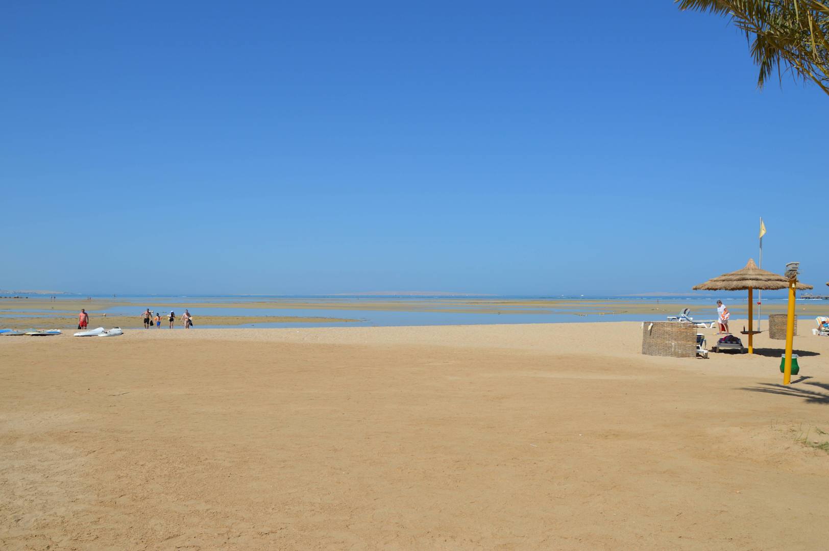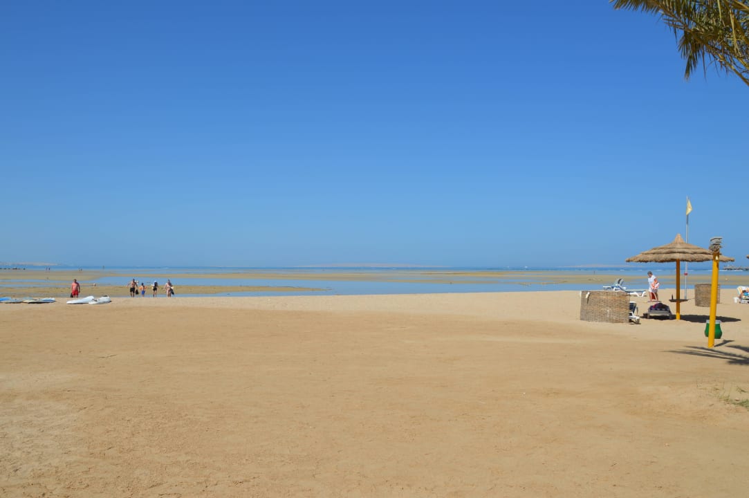 Plażaciekawe zjawisko woda sie cofa i daje mozliwosc spacerow po wodzie i zejscia od razu na rafy :)