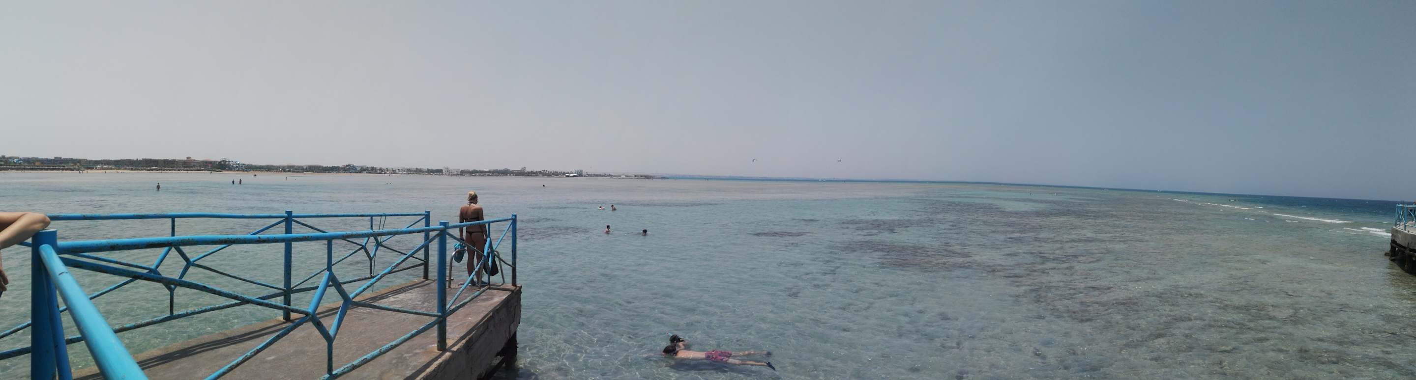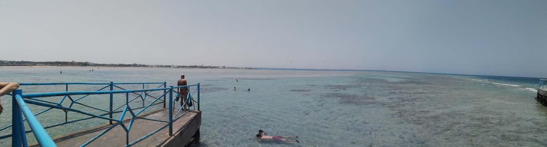 Links Strand, rechts das dunkelblau ist das Meer