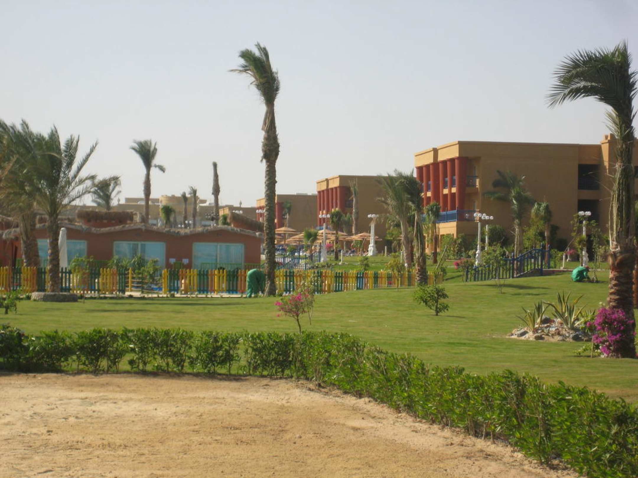 Blick vom Spielplatz zum Hotel