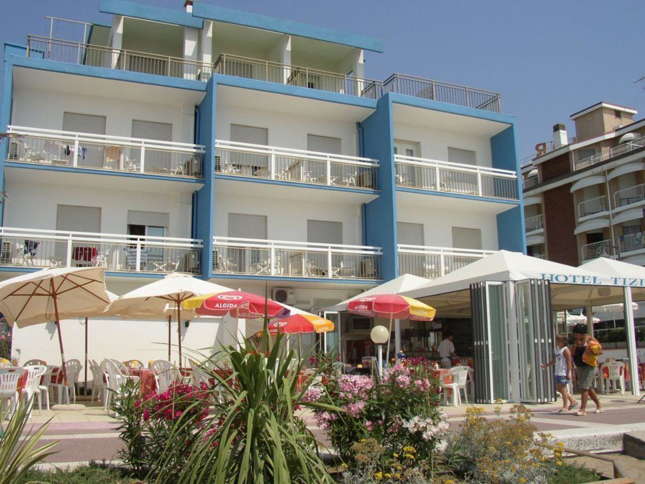 veduta frontemare dell'hotel Tizianbar di Caorle Venezia