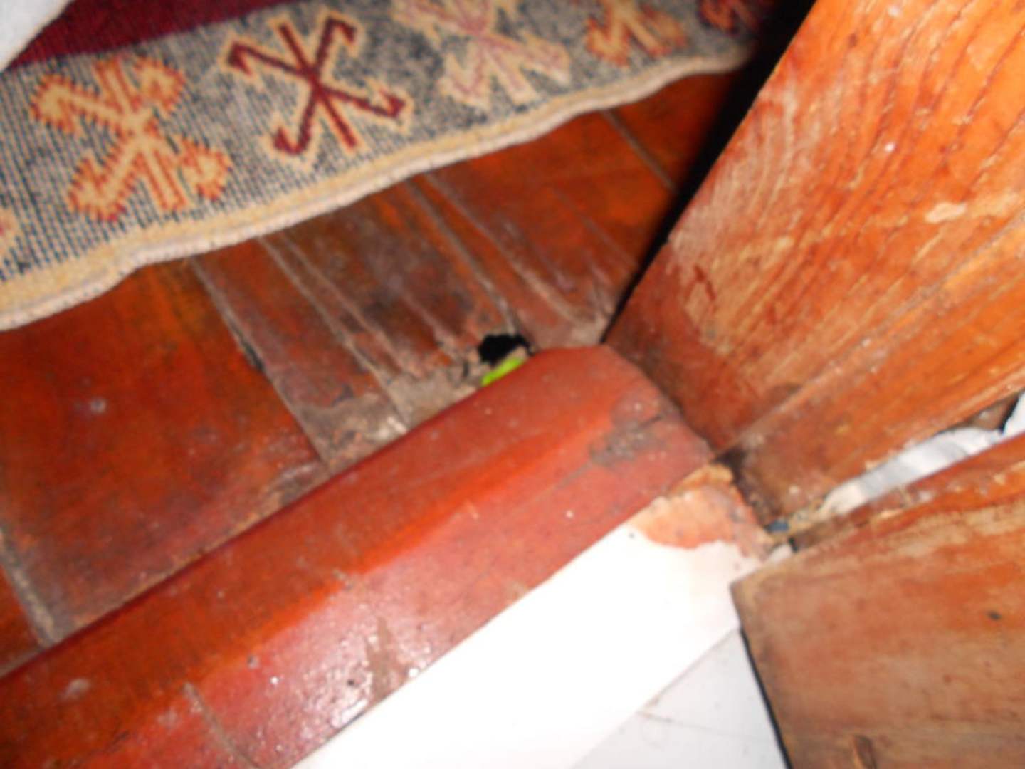 Holzfussboden mit loch und blick ins grüne..