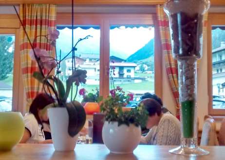 Frühstücksraum mit Bergblick