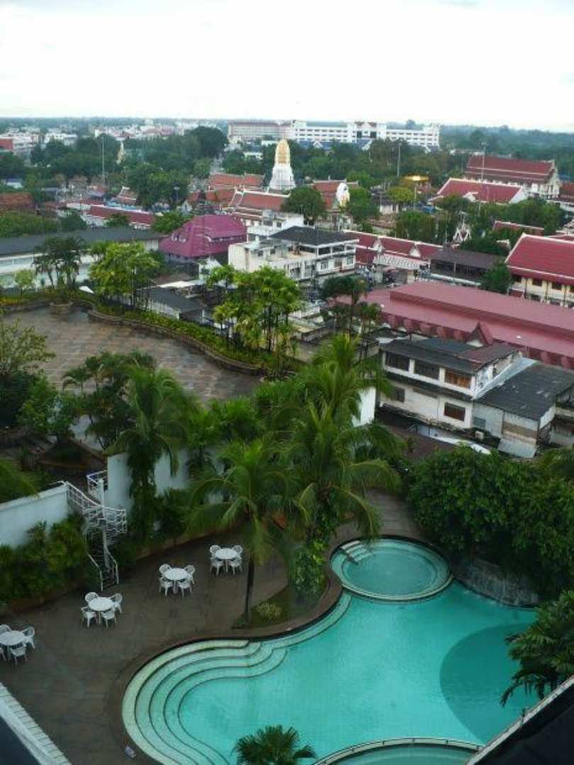 Aussicht auf den Tempel und den Pool