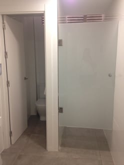 Neben dem Kofferraum gibt es noch Bäder zum frisch machen.