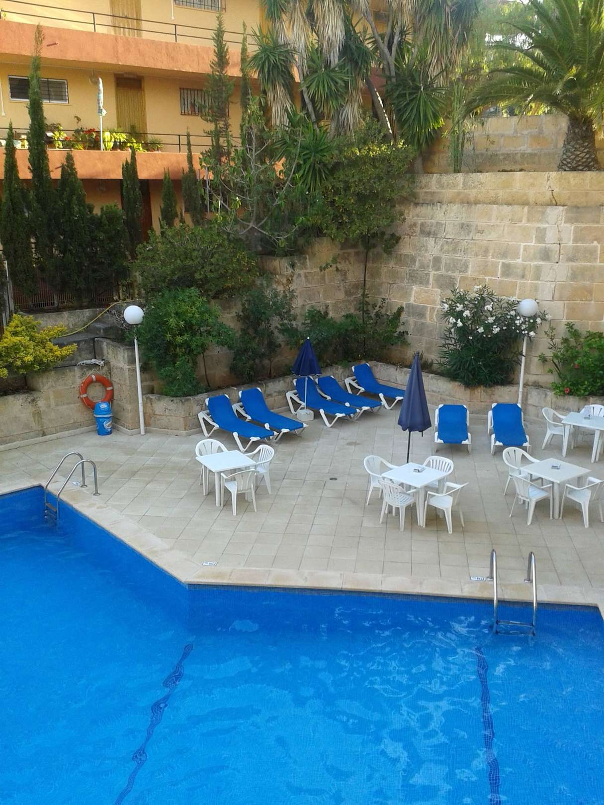 Aussicht von Zimmer 106 auf den Pool