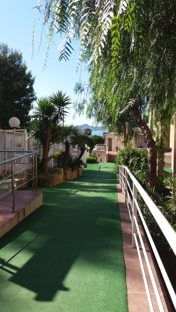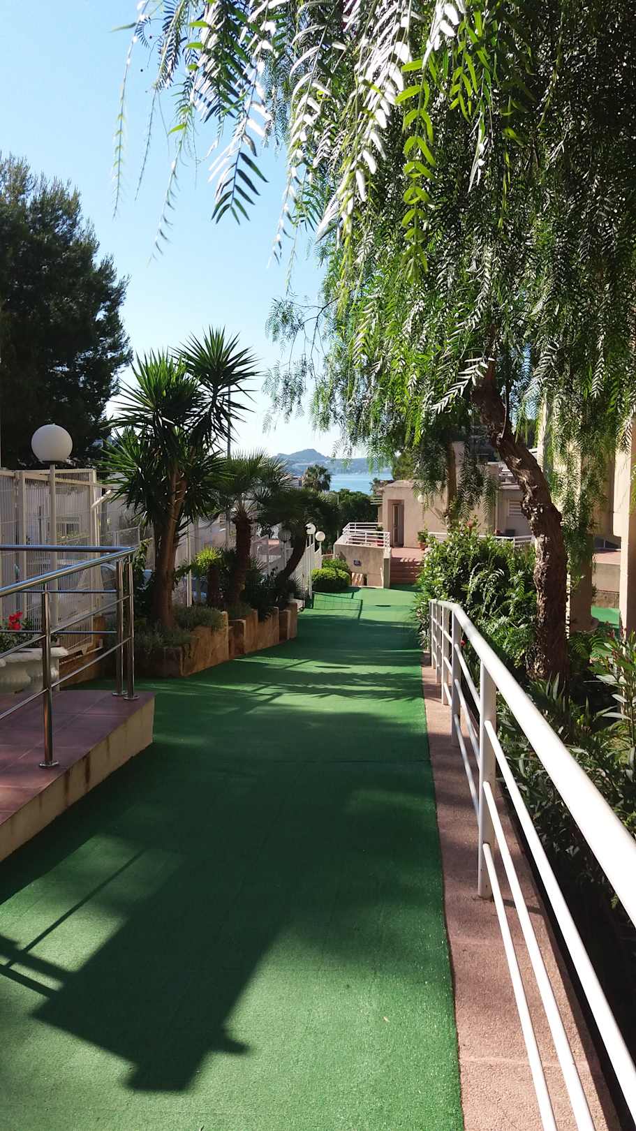Weg vom Haupthaus zum Nebengebäude (links am Geländer ist der Ausgang zur Straße)