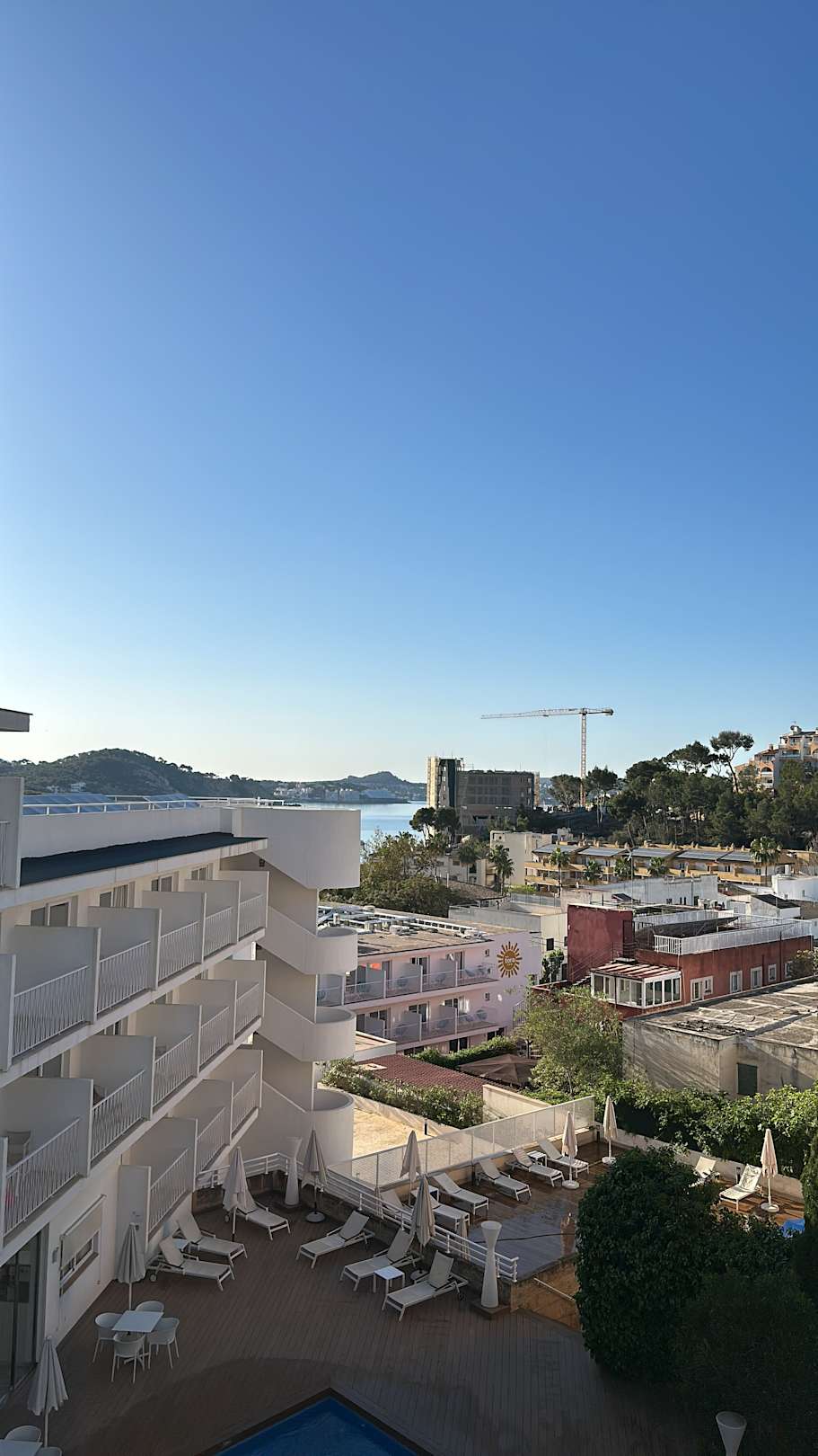 Ausblick auf Pool und Hotel (im Hintergrund sieht man das Meer)