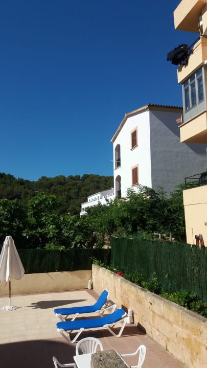 Terrasse auf der anderen Ebene, ein paar Stufen von der Hauptterrasse hinunter.