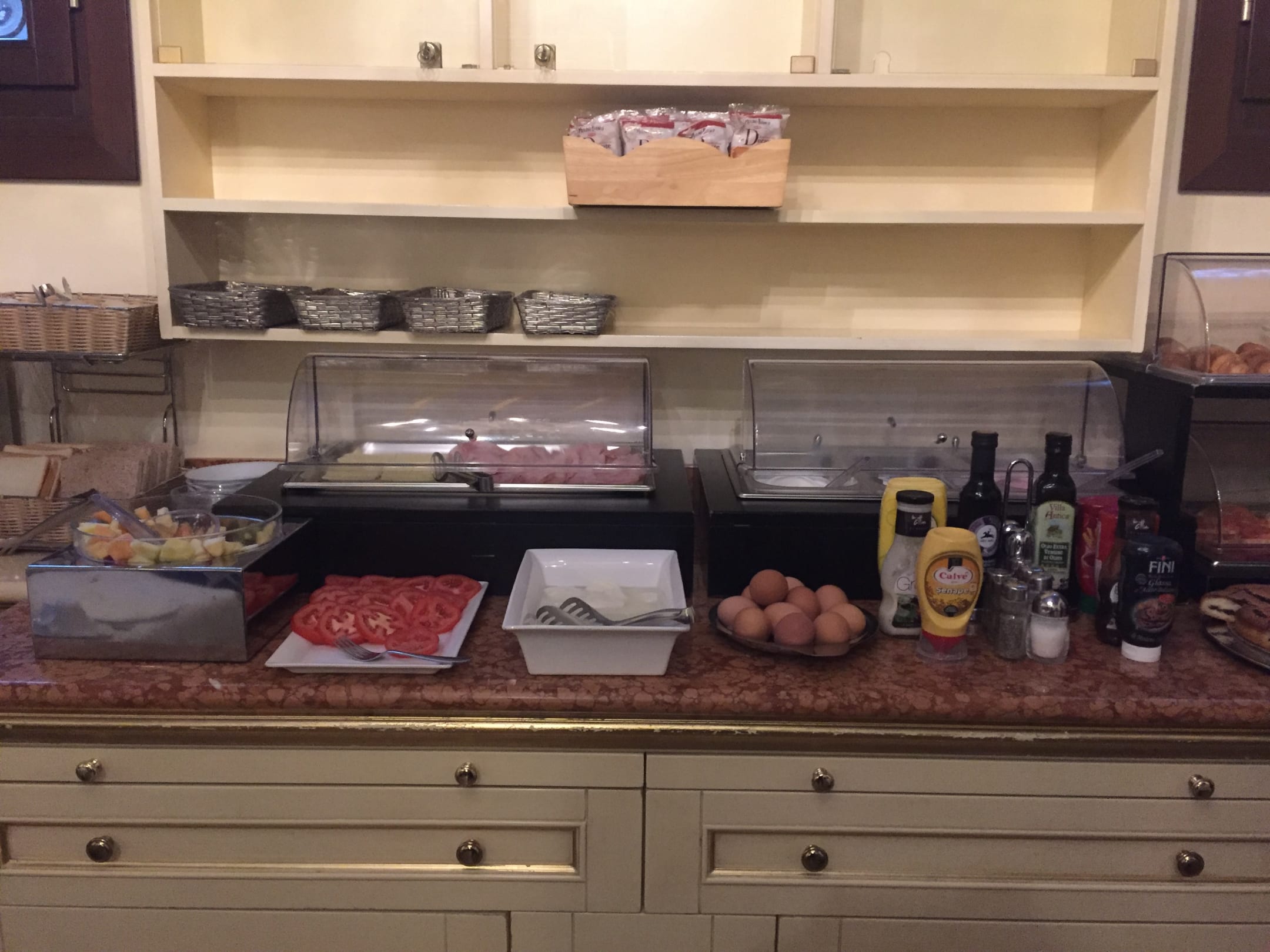 1 Sorte Wurst 1 Sorte Käse Kälte gekochte Eier O- Saft mit Mischungsverhältnis 2% Sirup 98% Wasser Milch mit Mischungsverhältniss 2% Milch 98% Wasser Rohe Brötchen die man selbst aufbacken muss Einfach nur EKELHAFT