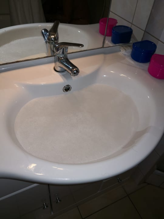 ZimmerIn diesen Zimmer gibt es nicht nur Dreck. Auch das Wasser in der Dusche und im Waschbecken laufen nicht ab.