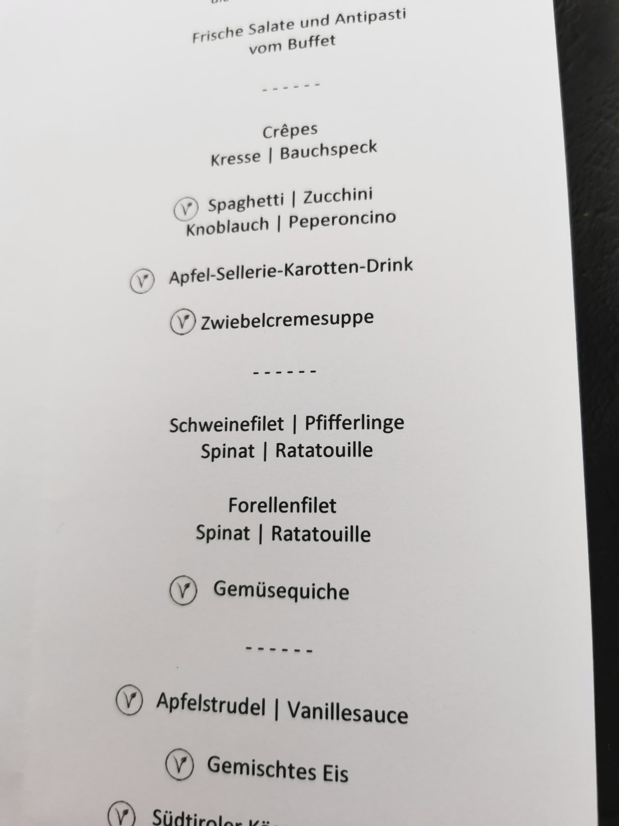 Jeden Tag zu beiden Hauptgerichten die gleiche Beilage
