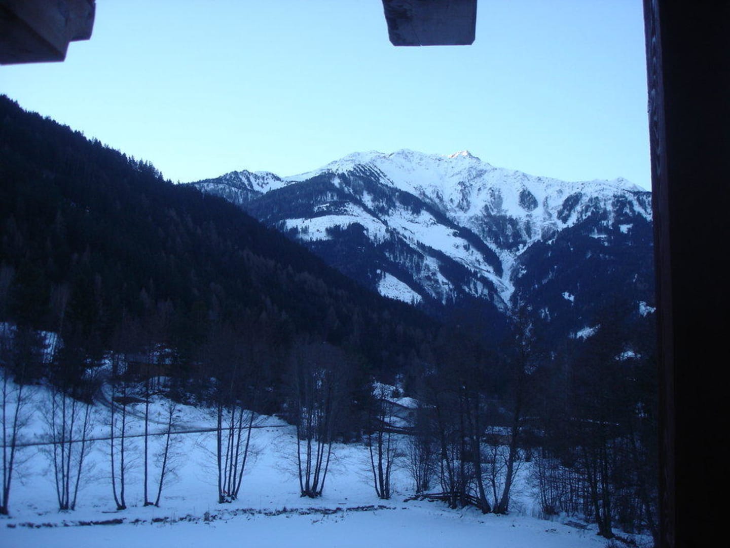 Blick bei geöffnetem Fenster auf die BergeFenster war zugleich große Balkontür die hinaus auf die Dachterasse führte von der man einen tollen Blick zum Hotelsee (eher Teich) hat und auf die Berge.