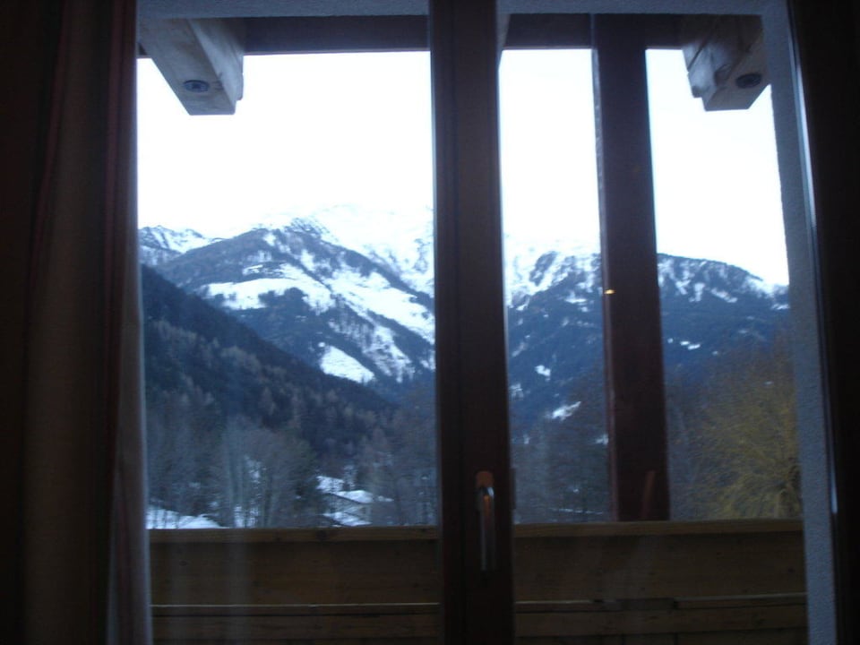 Blick bei geschl. Fenster auf die Berge