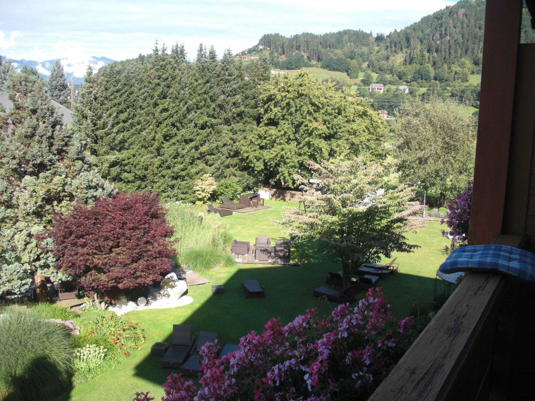 Blick vom Balkon in den Garten