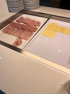 morgendliches Frühstücksbüffet, sehr dürftig und einfach