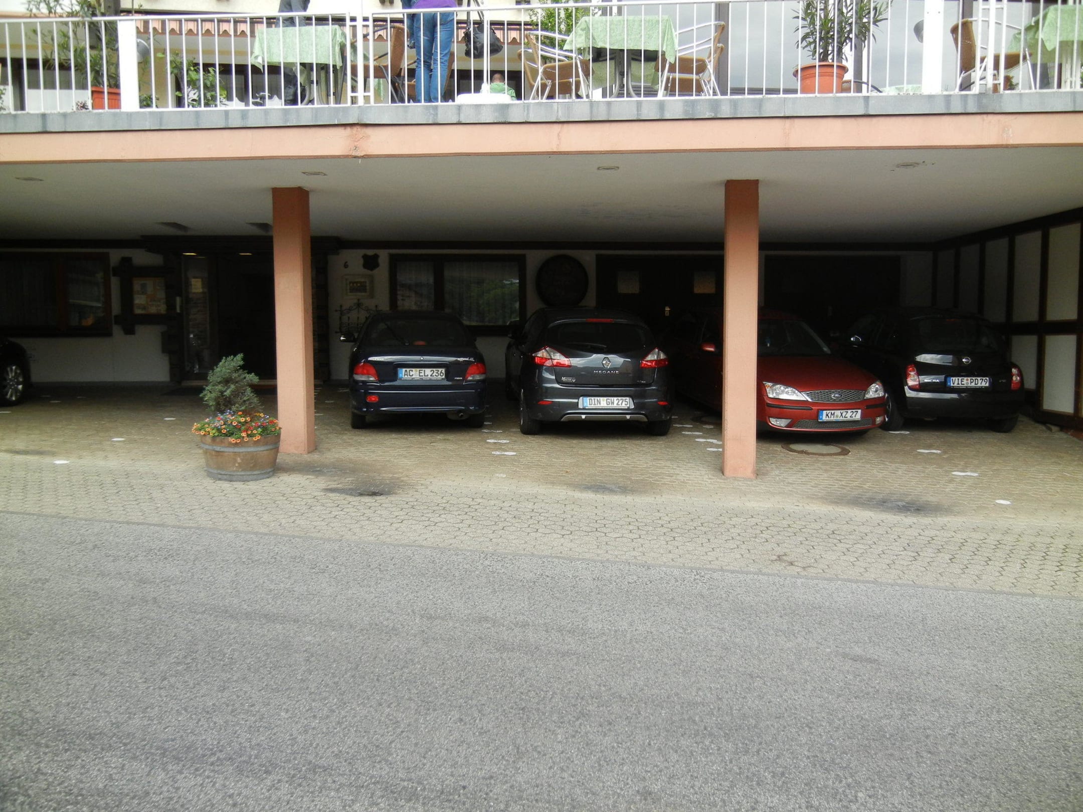 Ziemlich enge Parkplätze des Hotels